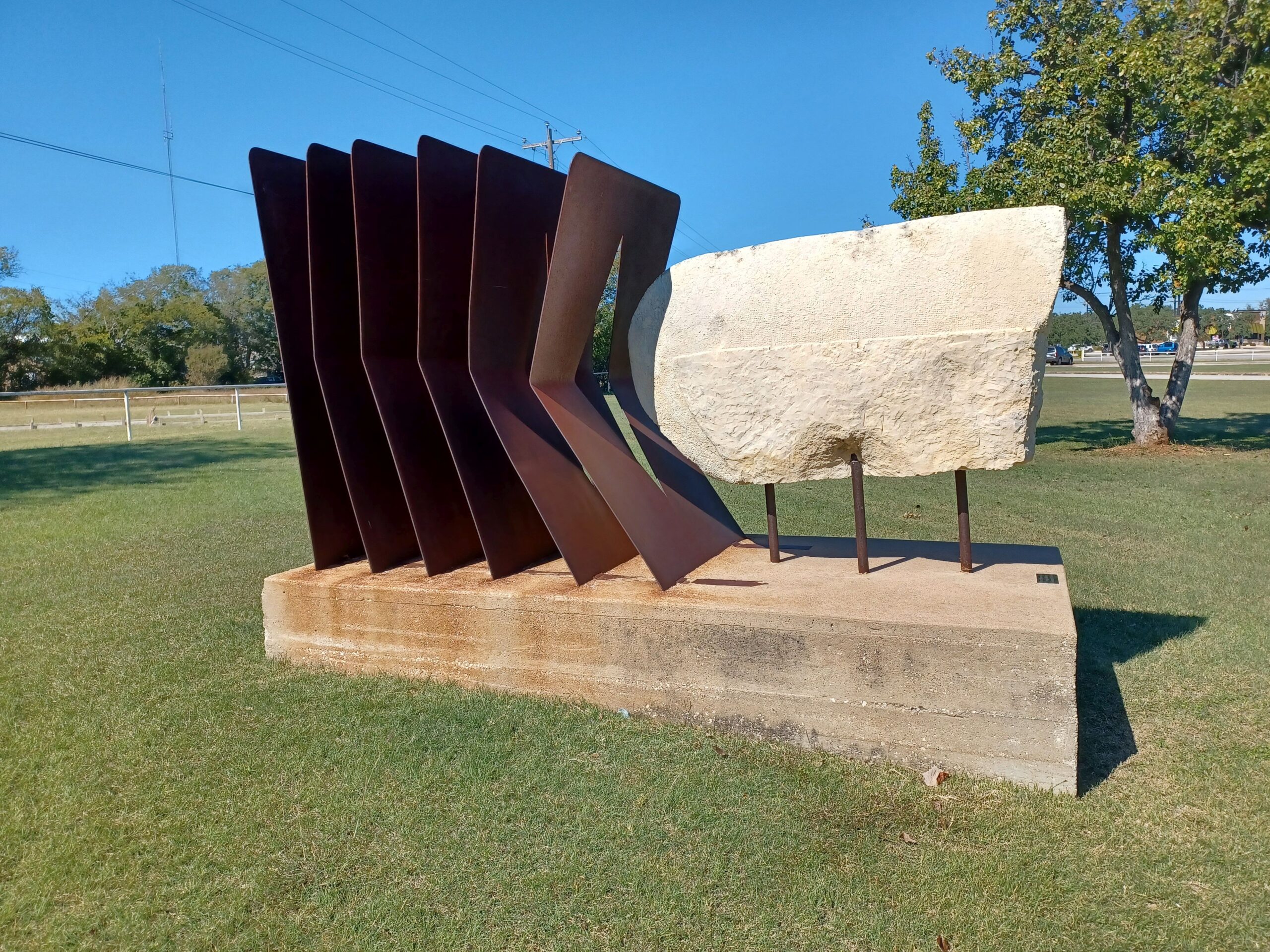 Dieter Hastenteufel created “Frozen Motion” using limestone and iron, and gives the impression of a large stone being driven through many layers of steel starting with larger holes that progressively become smaller. Born in Basel, Switzerland his family moved to Germany where he studied Sculpture and Ceramic-Mural at the Academy of Fine Art in Stuttgart, Germany in 1968. He moved to Canada in 1969 and was living in Flesherton, Ontario at the time of the 1976 symposium.